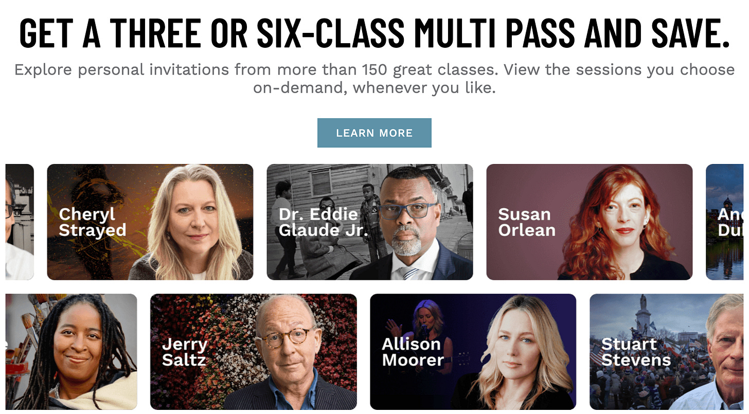 Visit myfivethings.com to view personal video invitations from writers, thinkers, and artists we admire – and to get special discounted pricing with our Five Things I’ve Learned Multi Pass.