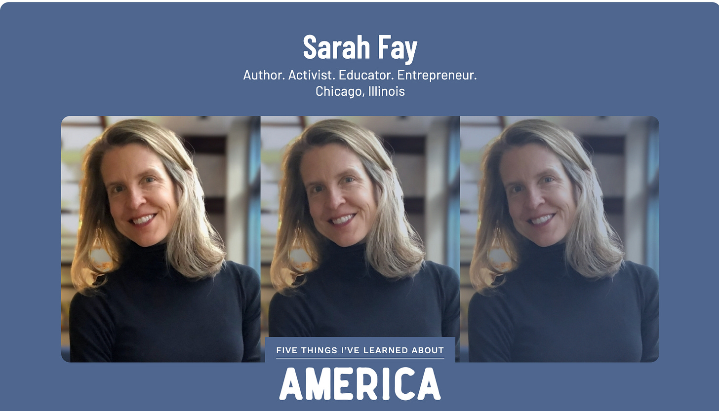 Five Things I’ve Learned about America presents live, personal conversations with leading thinkers, organizers, and advocates for our democracy. We’re also soliciting and sharing written pieces, short videos, and other bursts of ideas and inspiration from people whose ideas and experiences are equally inspiring and instructive.