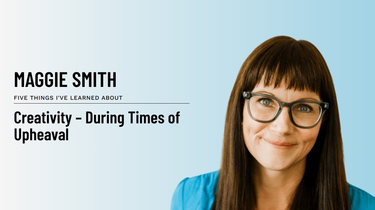 – Maggie Smith, Five Things I’ve Learned about Creativity – During Times of Upheaval