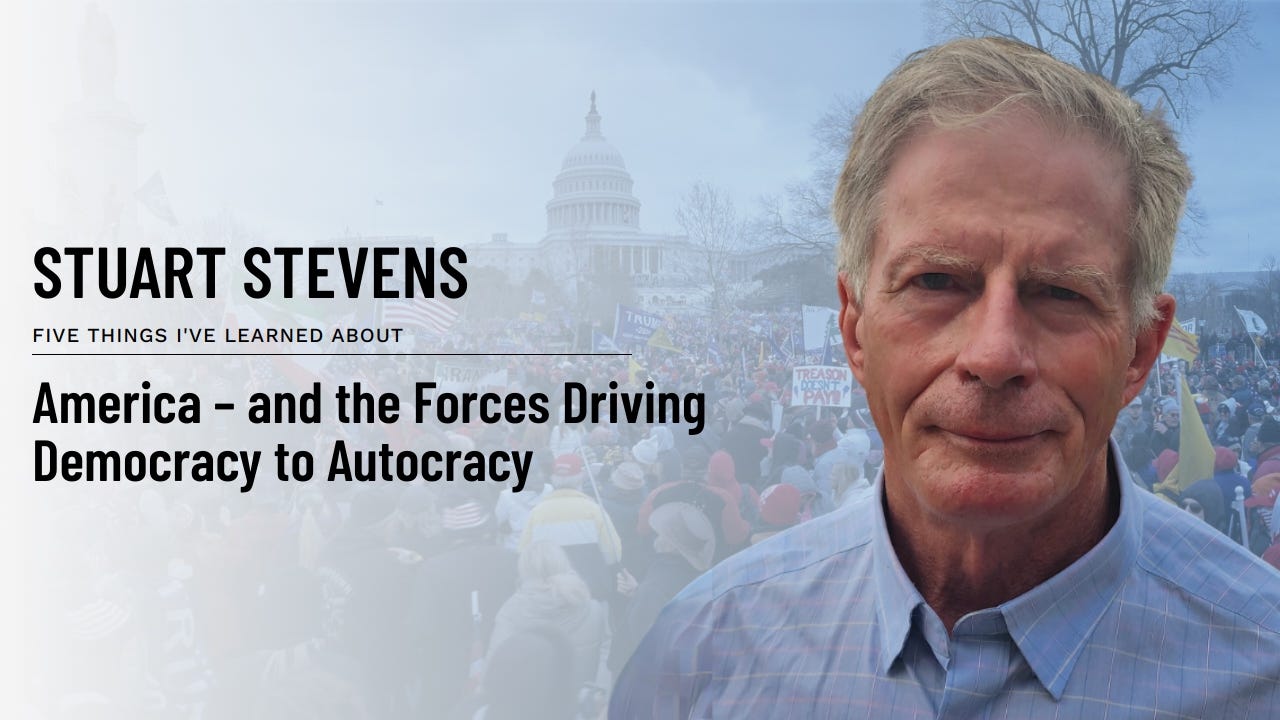 On demand: Get your free ticket now and join best-selling author and former Republican strategist Stuart Stevens and discover the Five Things He’s Learned about his old party and its role in the coordinated forces working to end American democracy as we know it – and what we must do today to fight back. As Lincoln Project Senior Advisor and media company Resolute Square partner, fighting back is what Stuart does every day.