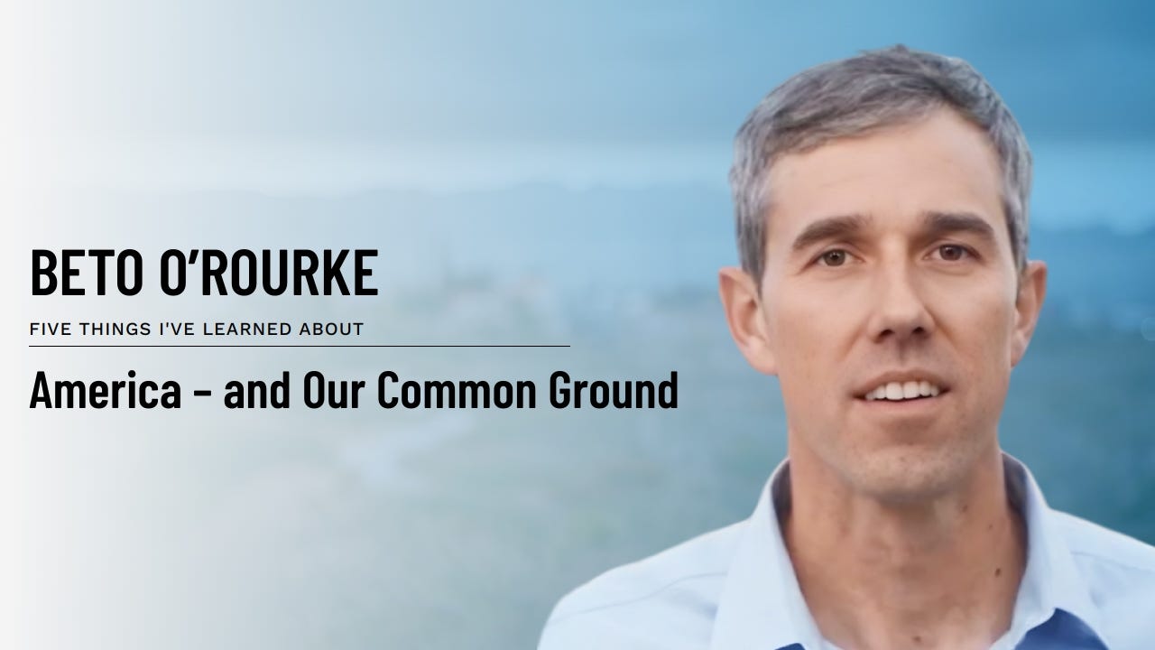 On demand: Get your free ticket now and join Powered by People founder and former Texas State Congressman Beto O’Rourke and discover the Five Things He’s Learned about the common concerns and ideals that connect individuals and communities everywhere across America.